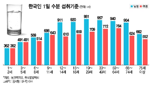 2020년 한국영양학회 연구에 따르면, 청소년기부터 노년기까지 남성은 하루에 900ml, 여성은 600~800ml 정도 섭취하는 것이 좋다고 하지만 전문가들에 의견은 위에서 언급했듯이 개인의 신체 조건과 나이가 다르기 때문에 섭취량 또한 달라야 한다고 합니다.